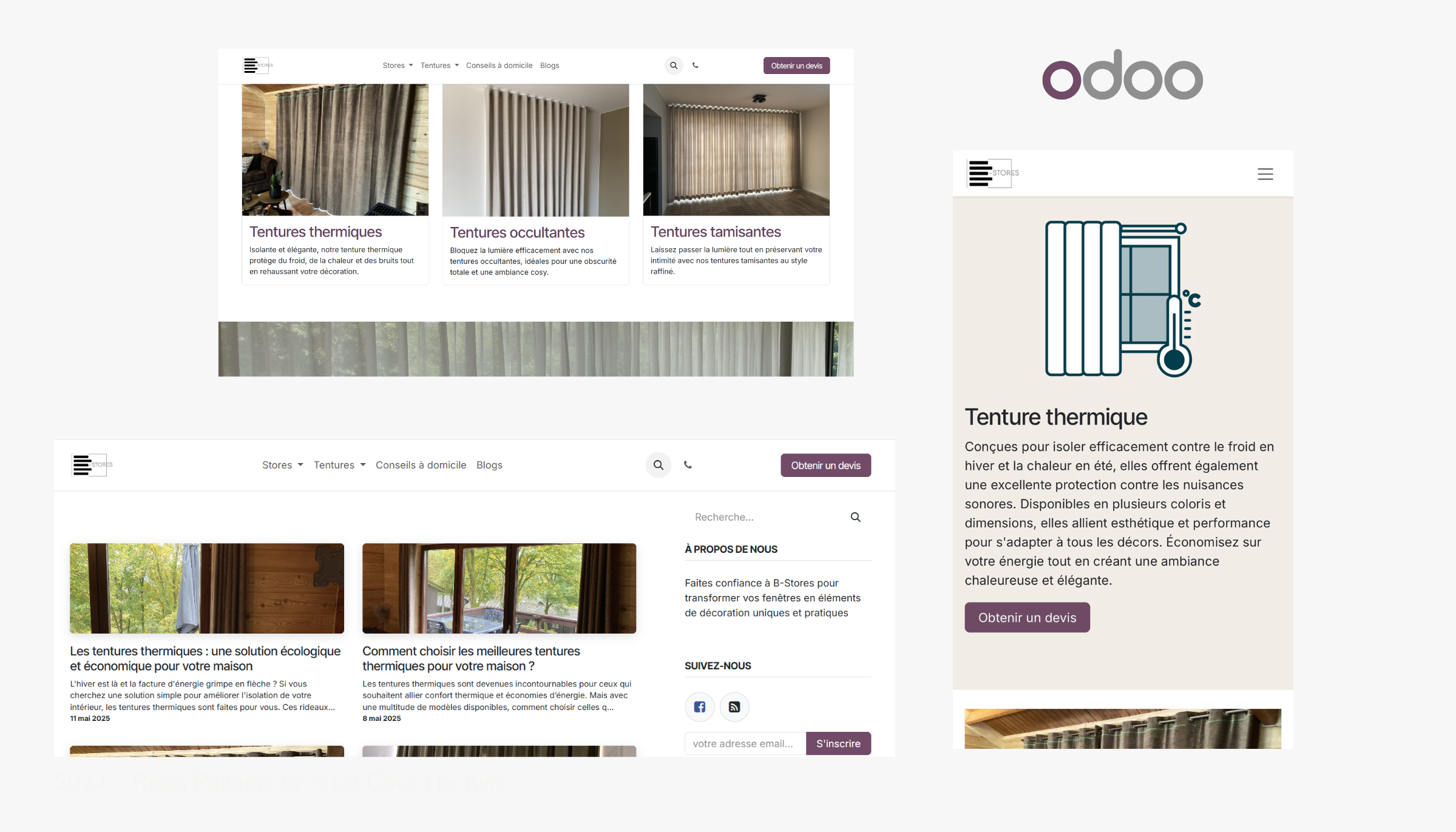 Un site web développé sous Odoo, conçu pour donner une véritable identité digitale à l’entreprise B-Stores. Il permet aux clients de découvrir les projets réalisés et de demander un devis directement. Voir plus
